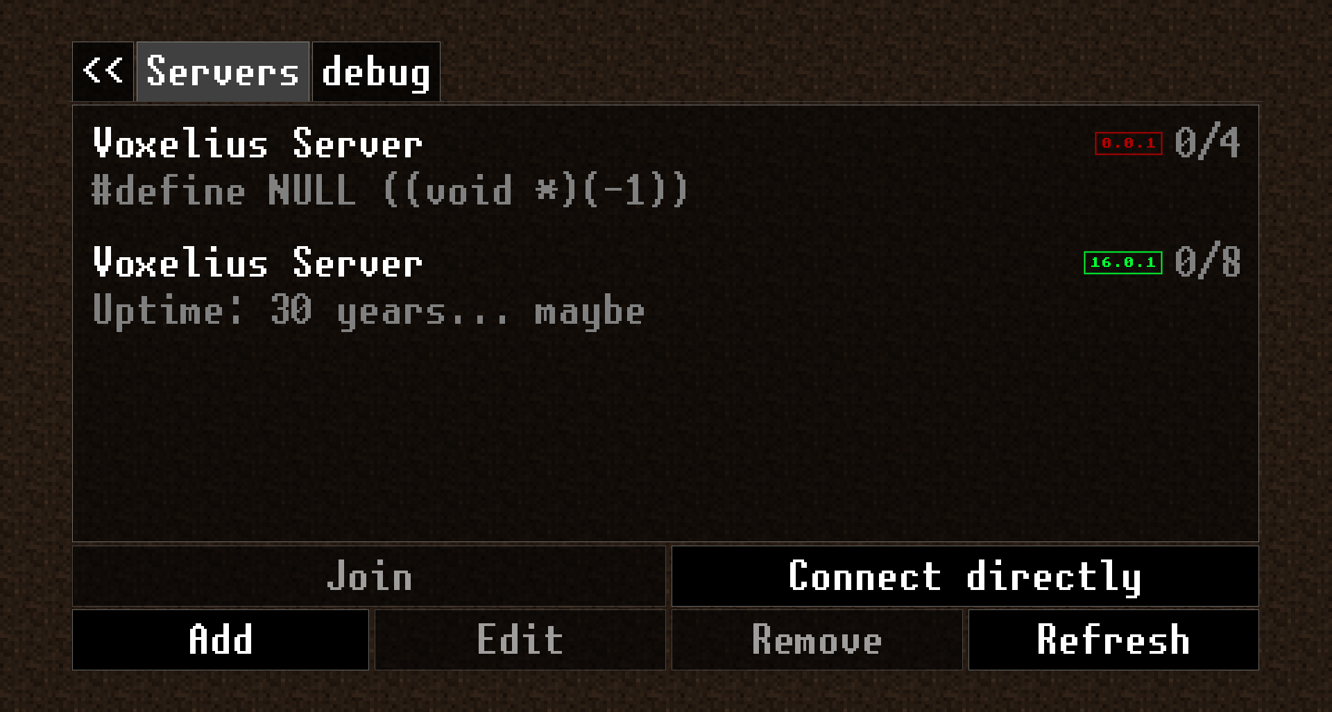 - Yellow badge signifies minor or patch versions differing. This might not be critical but the server config now features an option that allows operators to allow players with differing minor and patch versions to play;